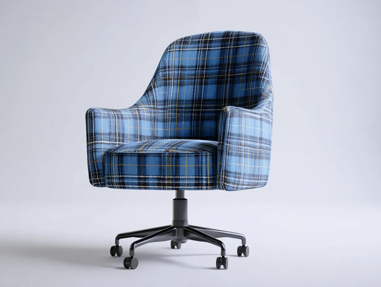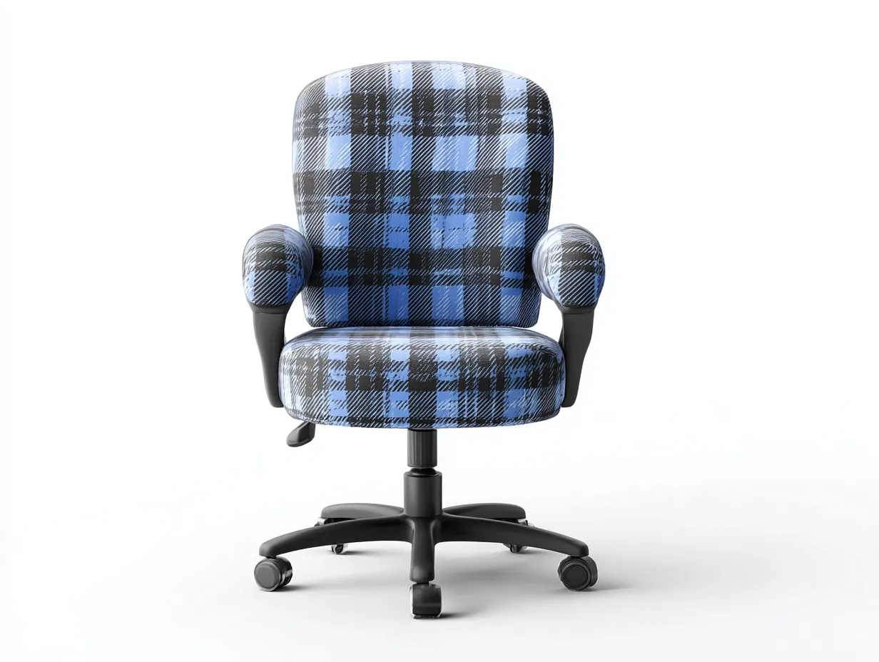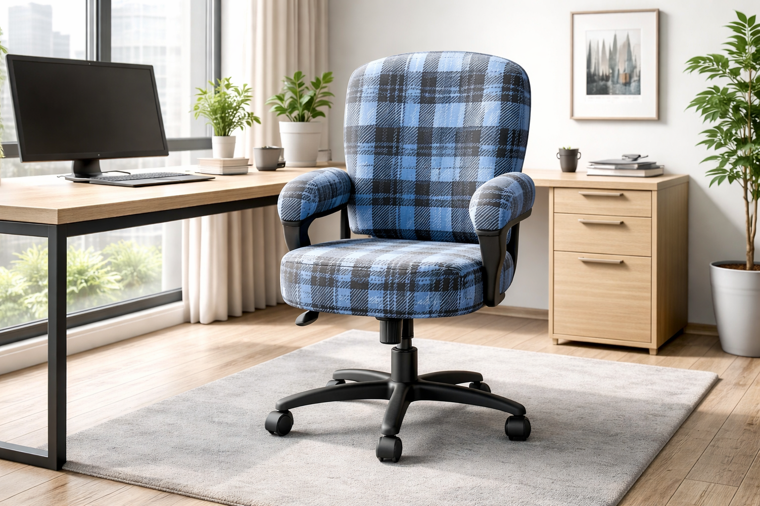 Silla de oficina giratoria 65 x 65 x 90 cm - tapizado de cuadros azules con base negra - estilo contemporáneo con acento clásico - con brazos integrados