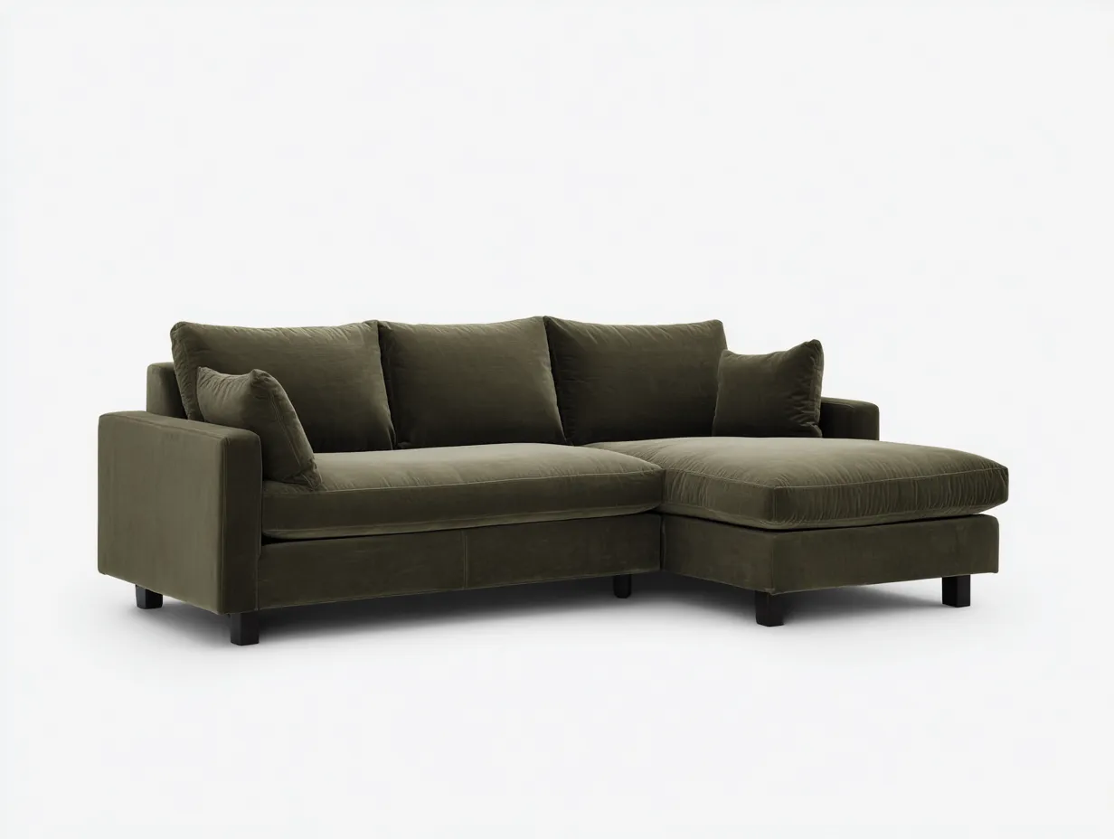Sofá rinconero de terciopelo verde oliva con chaise longue 238 x 160 x 74 cm - para salón - estilo minimalista y envolvente