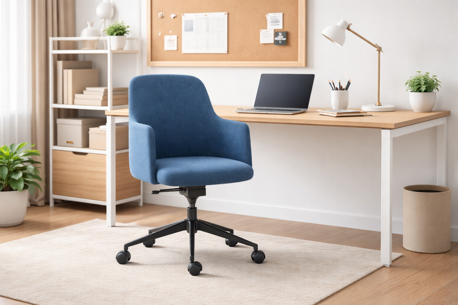 Silla de oficina giratoria 62 x 62 x 85 cm - tapizado azul texturizado y base negra - estilo contemporáneo funcional - con ruedas y respaldo envolvente
