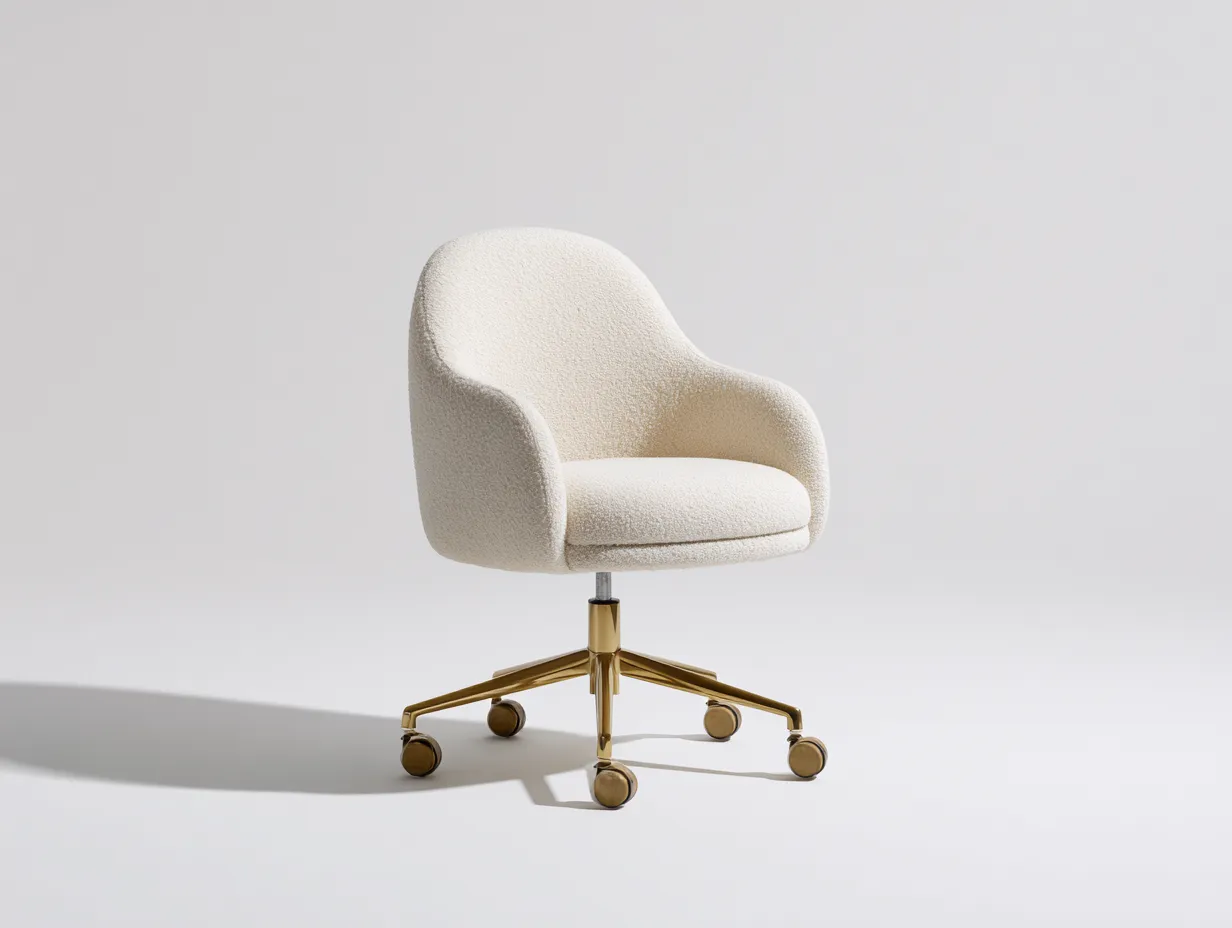 Silla de oficina giratoria 60 x 60 x 81 cm - tapizado bouclé blanco y base dorada - estilo contemporáneo refinado - con ruedas y asiento envolvente