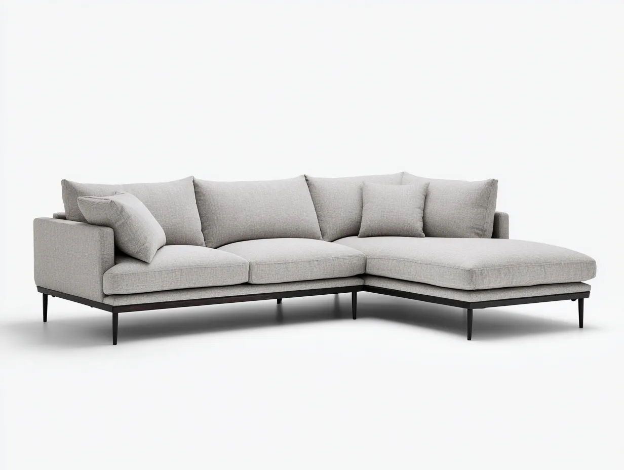 Sofá rinconero de tela gris claro con chaise longue 268 x 160 x 83 cm - para salón - estilo moderno y refinado