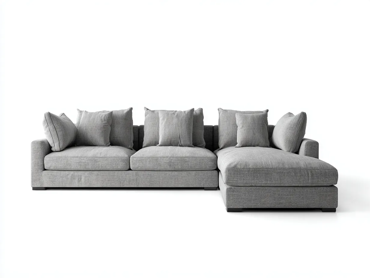 Este sofá rinconero de tela gris claro con chaise longue aporta al salón una estética suave, luminosa y muy acogedora, pensada para crear un espacio de descanso amplio y equilibrado. Su diseño de líneas limpias se combina con una composición generosa de cojines sueltos, lo que refuerza una sensación envolvente y relajada desde el primer uso. La chaise longue amplía la zona útil de asiento y permite disfrutar de una postura más libre en el día a día. Gracias a su volumen bien proporcionado y a su presencia serena, este modelo funciona muy bien como pieza central de un salón moderno, cálido y funcional.